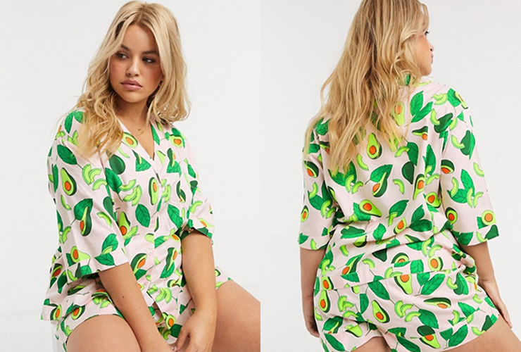 上面“大內密探”的睡衣無論是材質還是設計都挑不出什么不好來,唯一的缺點就是讓錢包君有點受不住啊!對于學生黨來說,平價電商ASOS家的睡衣不僅款式多樣,而且價格也很友好。如果覺得上面的吊帶背心和吊帶裙太過于裸露而且不夠隨意的話,寶寶可以看看這件分體睡衣。滿身的牛油果實在是太可愛了,平時穿它在家看劇、做飯什么的完全沒問題。甚至下樓倒個垃圾、遛個彎也不會覺得違和哦。