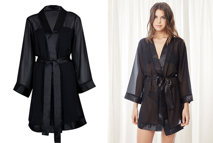 睡袍也是睡衣中很熱門的款式,不僅好穿好脫,而且還很好看。這件黑色的睡袍看似簡單,玄機卻在于它的全身紗質的透視設計,上身后性感指數爆表,很適合用來節日前給男票一個驚喜Look喔。