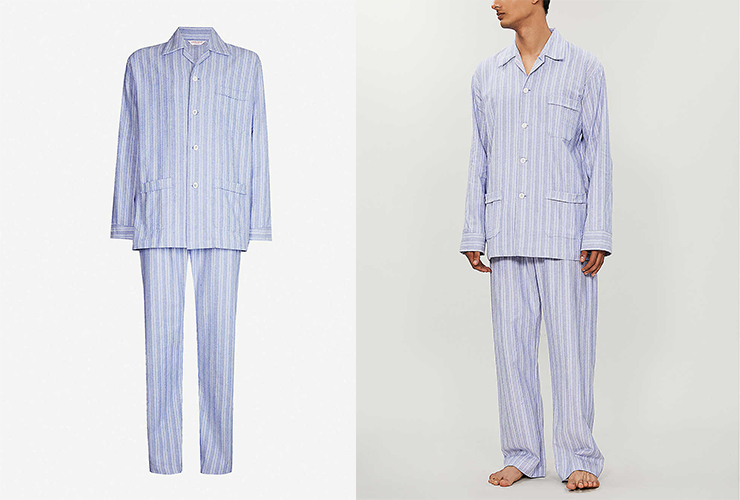 DEREK ROSE這款睡衣和上一款最大的不同就是它采用純棉的質地,價格上就會更親民一些。而且經典的法蘭絨棉也比較保暖,比較適合秋冬房間冷的時候穿。整體采用了淺藍和白色條紋交錯的紋樣,給人一種更加清新溫暖的感覺。