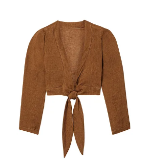 淺棕色的系帶亞麻薄紗短款上衣,這件單品穿出不一樣的感覺,同樣的時髦,不同的味道。