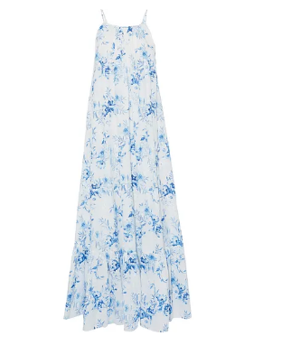 褶皺花卉印花 Broderie anglaise 純棉巴里紗超長連衣裙