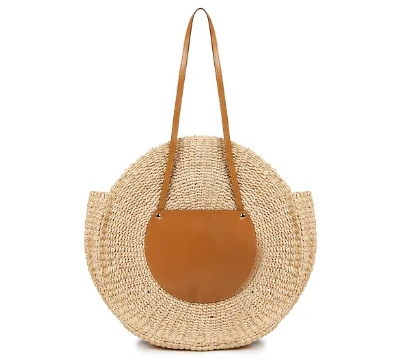 卡尤Belen 皮革邊飾草編手提包