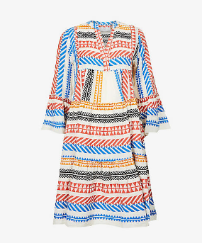 人氣產品Ella連衣裙。采用純棉面料,搭配傳統圖案,從衣領到下擺,結合喇叭袖和層疊裙身。只需搭配太陽鏡和系帶涼鞋。