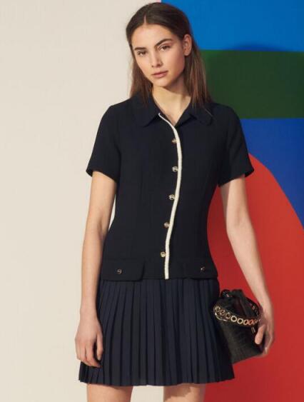 購買鏈接:https://fr.sandro-paris.com/fr/robe-plissee-mix-matieres/SFPRO01638.html?dwvar_SFPRO01638_color=44