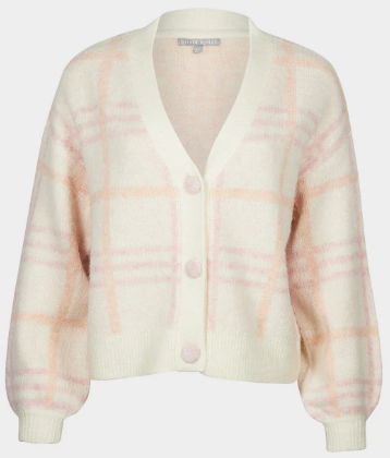 4、Charlie Checked Pink & White Knitted Cardigan £59.50 £30