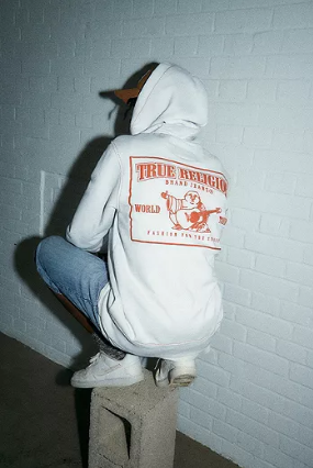 True Religion 光學白色Big-T 拉鏈連帽衫