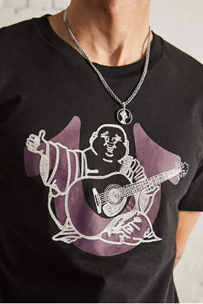 True Religion佛像徽標圖案T 恤,飾有刺繡細節,帶來紋理飾面。柔軟的棉質風格英尺。圓領、落肩和短袖。