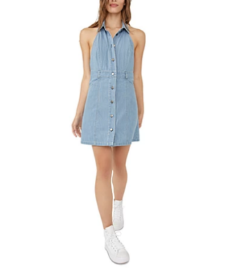 Free People這款紐扣式牛仔連衣裙采用露背領(lǐng)口和露背設(shè)計,正面有紐扣;腰帶環(huán),尖領(lǐng),露背領(lǐng)口,高腰廓形,是您衣櫥的完美補充。