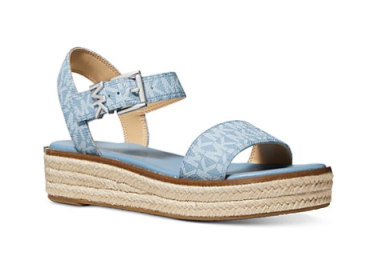 Michael Michael Kors 的Richie 涼鞋采用麻底厚底和都市時尚系帶款式,為裝扮和休閑裝扮增添輕快感,圓頭踝帶露跟麻底厚底坡跟涼鞋,帶可調(diào)節(jié)搭扣。