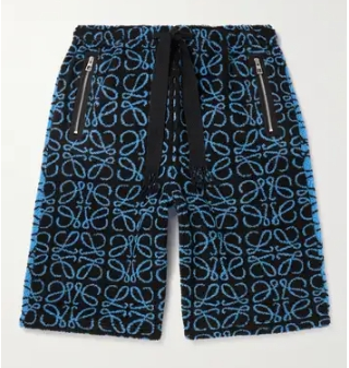 Loewe 的短褲采用毛絨抓絨制成,保暖且觸感柔軟。提花面料飾有標志性的 “Anagram” 徽標,闊腿褲身配有束帶褲腰,穿著舒適。