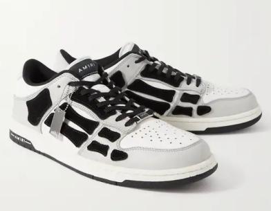 AMIRI 將其暢銷的 “Skel Toe” 套穿鞋改造成低幫運動鞋。單品采用拼色皮革和絨面革制成,鞋側(cè)壁采用相同的手工剪裁貼花,配有舒適的軟墊衣領(lǐng)。