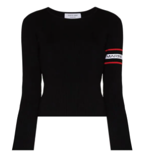 Marine Serrelogo邊飾毛衣設計、衣袖飾有logo貼花、長袖、羅紋細節、平直下擺、圓領。