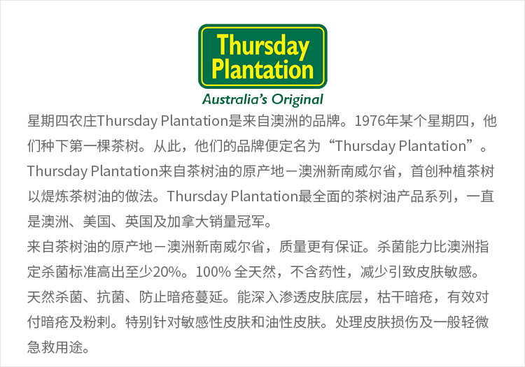 • 中文名稱 :Thursday Plantation 星期四農(nóng)莊 茶樹(shù)祛痘凝膠 25g