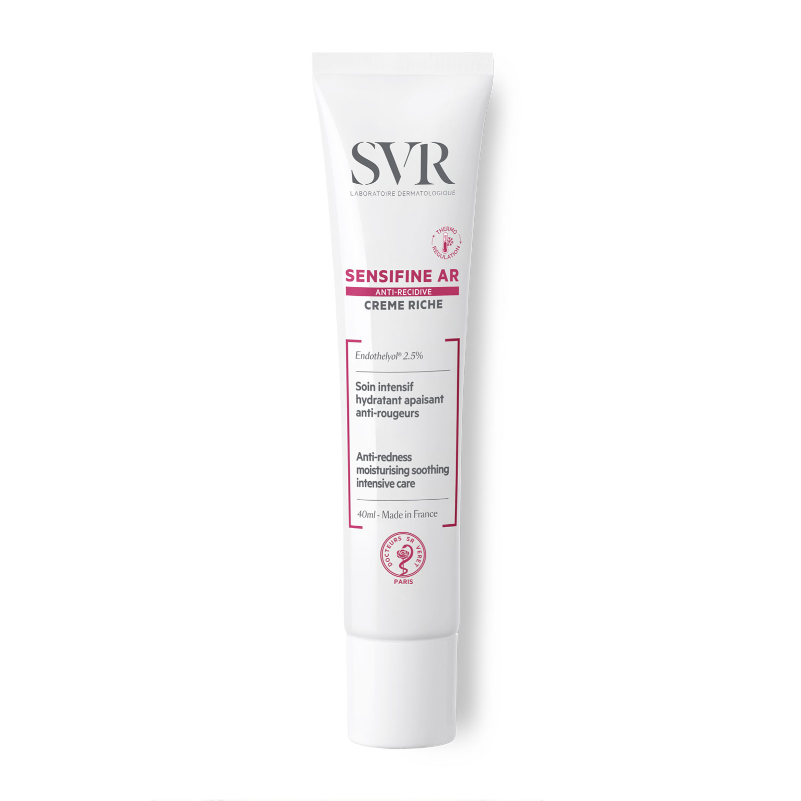 Ideal in case of occasional or recurrent redness, visible small vessels, SVR Sensifine AR Crème Riche Anti-Redness Moisturising Soothing Intensive Care has been created to moisturise and reduce redness of the skin prone to rosacea. Suitable for all skin types.Forming a cool and fresh effect, this care instantly and permanently calms feelings of heat and redness, prevents the appearance of redness. It also contains green pigments neutralising redness.