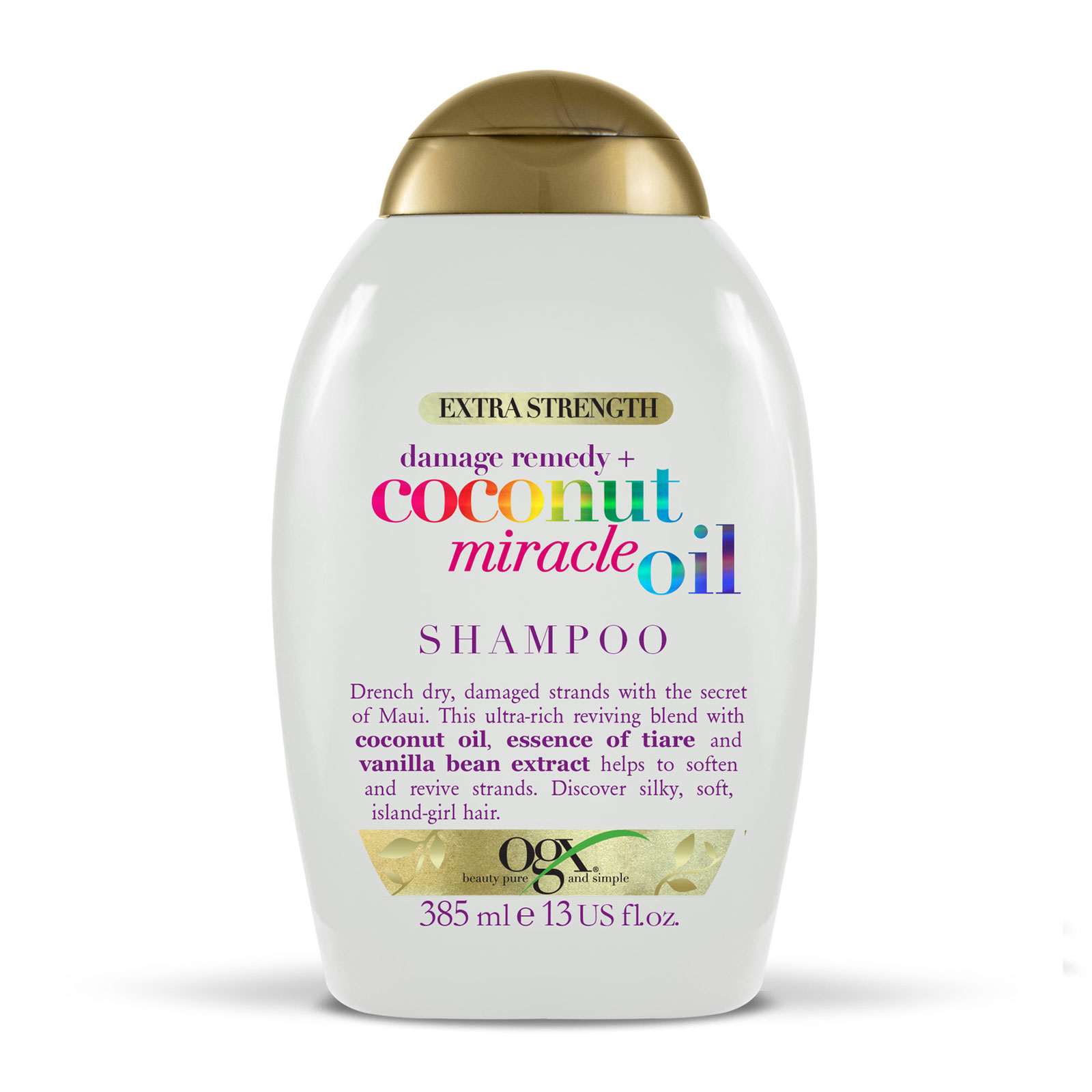 Discover OGX Extra Strength Damage Remedy + Coconut Miracle Oil Shampoo, an ultra-rich blend with Coconut Oil, Vanilla Bean extract and essence of Tiare – a tropical flower from Tahiti – will help to transform thick, coarse hair into silky perfection.