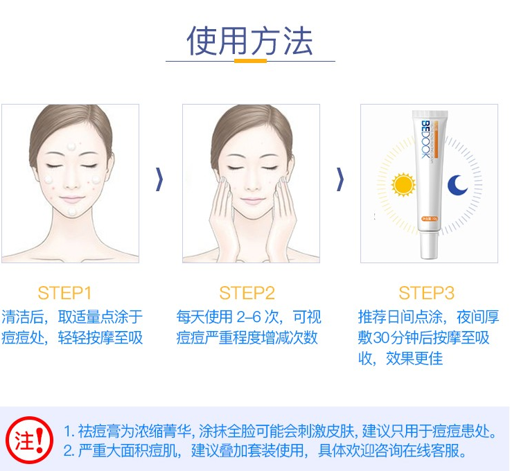 產品為透明啫喱質地,帶有濃郁的藥味,適用于小痘和剛冒出的痘痘使用,算是藥用品,不可以作為日常護膚使用,只需要涂抹在痘痘處即可,有著很好的抑制面部細菌再生和消炎祛痘的作用。