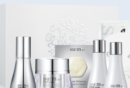 sum37度呼吸時光肌底系列套裝是一款美白保濕護膚品,其中含有煙酰胺成分能夠抑制黑色素的沉積,深層滋養修護肌膚。水解貝殼硬蛋白和酵母提取物可以令肌膚變得白皙有光澤,在韓國補水美白產品排行榜10強中這款產品的口碑很好,堅持使用一段時間肌膚會變得水潤有光澤。