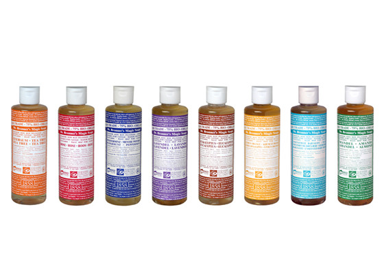 鏘鏘鏘,一上來就來給大家分享的是一個非常神奇的產品,叫做Dr. Bronner’s Magic Soaps。它是液態的soap,里面含有有機的椰子油、橄欖油,而且這個系列有好多不同“口味”的液態皂,比如茶樹的、薰衣草的、薄荷的等等,每種里面都含有不同的精油。這個產品是非常柔和的,但清潔效果也是相當的好。它的神奇之處在于可以拿來洗臉、洗頭、洗澡,還可以用來洗衣服,洗盤子洗碗呢,簡直就是萬能皂啊有木有,反正我是覺得它甩出MAC的刷子清潔劑好幾條街去。