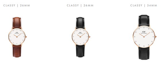 Daniel Wellington家的款式目前有3種:CLASSIC系列、DAPPER系列和CLASSY系列。