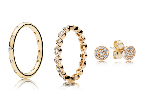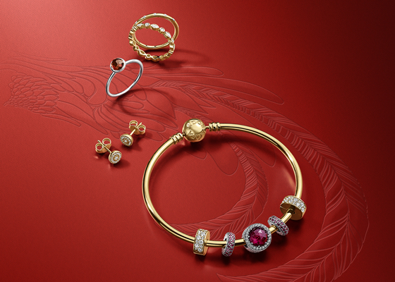 如果你正在為新年禮品發愁,不妨去潘多拉的新年系列找找靈感吧。比如圖上的Cerise Radiant Hearts Charm、Shining Elegance Spacer Clip和Fancy Purple Pavé Inspiration Spacer Charm串飾,還有Alluring Brilliant Marquise Ring和Gold Droplets Ring混搭,再加上Radiant Elegance Stud Earrings就是一套很美的裝扮啦。