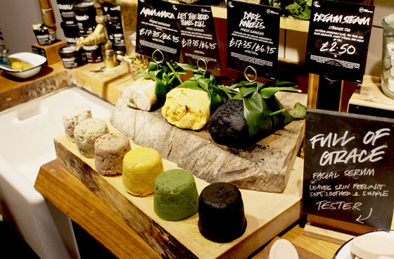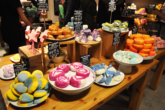 LUSH作為英國(guó)本土的天然護(hù)膚品牌,深受妹子們的愛(ài)戴,而且他們家?guī)缀鯊牟淮蛘郏褪沁@么任性。每次回家,我都要帶好多他們家的洗頭皂作為禮物,朋友們都很喜歡。他們家所有的產(chǎn)品都是由新鮮的有機(jī)水果、蔬菜、花草及上等香熏油等天然原料全人手制造。由于LUSH 采用最新鮮的原料,所以產(chǎn)品的保質(zhì)期都比較短暫,大多是幾個(gè)星期到幾個(gè)月。每次經(jīng)過(guò)LUSH的店門(mén)口,都忍不住觀(guān)看,繽紛的色彩和可愛(ài)造型實(shí)在是太吸引眼球了。在店里你可以按照自己的喜好,現(xiàn)場(chǎng)切割各種類(lèi)別的護(hù)膚保養(yǎng)品,稱(chēng)重計(jì)價(jià),就如同買(mǎi)甜點(diǎn)一樣有趣過(guò)癮。