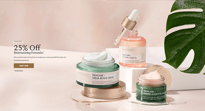 Biossance官網護膚品限時75折專場 經典面霜、精粹水都有