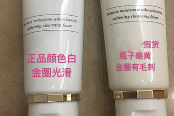 4、正品CPB洗面奶是白色管體,瓶蓋有個(gè)金屬圈,假貨瓶身泛黃,金屬圈也沒有那么明亮。