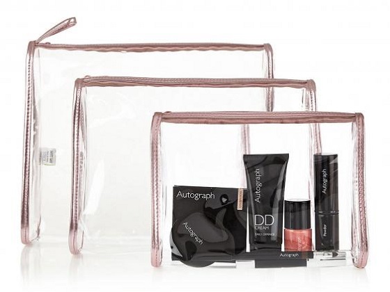 M&S 3 Piece Clear Cosmetic Bag Set