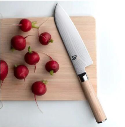 在料理人心里,廚刀并不是一種簡單的烹飪工具,它有著神圣的地位。日本鑄刀以悠久古老的歷史、精湛的技藝馳名世界。而旬刀,正是集技藝精湛的技師采用傳統(tǒng)手工工藝制成的,為的是將每一把廚刀獨(dú)一無二的完美面呈獻(xiàn)給世人,這與“旬”在日語中的含義——“完美的極致”,十分吻合。可以說,日本旬刀在材料、工藝、設(shè)計方面,都是藝術(shù)品級別的,這款Shun 旬 Cutlery系列 DM0702W Classic Blonde 經(jīng)典大馬士革不銹鋼三德刀,刀刃長約18cm,刀具采用VG-MAX超級不銹鋼材核心,共69層金屬,可用于在砧板上切肉片,蔬菜和魚片,直線的刀刃設(shè)計特別適用于廚房中常有的連續(xù)切菜作業(yè)。刀面有手工錘制的凹痕,不但美觀且實(shí)用性強(qiáng),開封角度為16度,擁有良好的鋒利度。Blonde PakkaWood烏木刀柄,不銹鋼尾端蓋帽和傳統(tǒng)人體工學(xué)抵消受力點(diǎn)增加其效用,符合大部分用戶使用習(xí)慣,增加手握的舒適度。