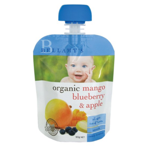 貝拉米有機芒果藍莓和蘋果有光滑的質(zhì)感,在澳大利亞制造。