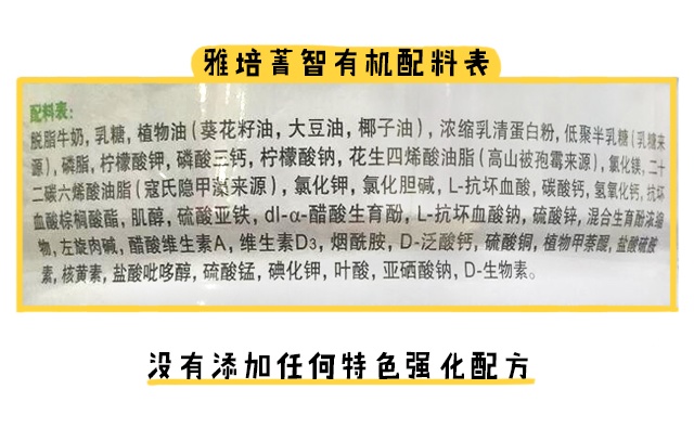 可能在一些媽媽的觀念里,有機奶粉就是最營養的奶粉,但事實上并不是這樣~有機認證規定了原料必須保證至少95%以上成分來自有機,所以人工合成的營養素不能過多添加,雅培菁智有機的強化配方就非常少了。