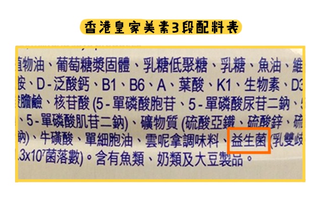 另外,香港皇家美素3段除了天然乳脂之外,還含有益生菌,益生菌可以幫助調節寶寶腸道菌群平衡,促進消化,增加腸道免疫力。