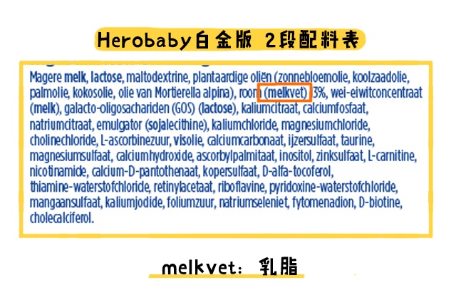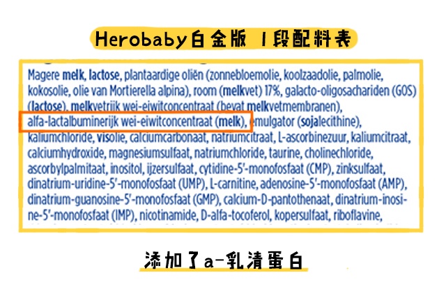 論營養(yǎng)配方,其實(shí)Hero Baby白金版就是在普通版的基礎(chǔ)上升了個級,白金版全段數(shù)都加入了天然乳脂。
