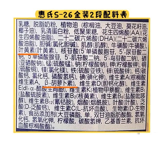 而惠氏S-26是全部段數添加了對寶寶視力發育有幫助的葉黃素和β-胡蘿卜素。