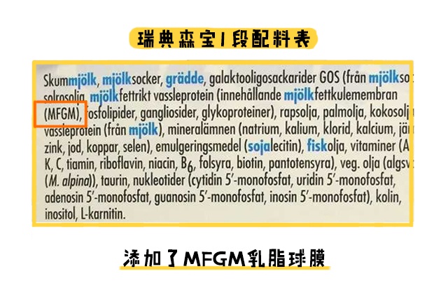 天然乳脂其實就是牛奶脂肪,它可以優化鈣吸收,軟化便便,對便秘問題有一定改善作用,不過初生寶寶的消化系統尚未成熟,對牛奶脂肪不是十分好吸收。除了天然乳脂之外,森寶1段還加入了有助提升寶寶認知能力的MFGM乳脂球膜,但2段之后就沒有再添加進去了。