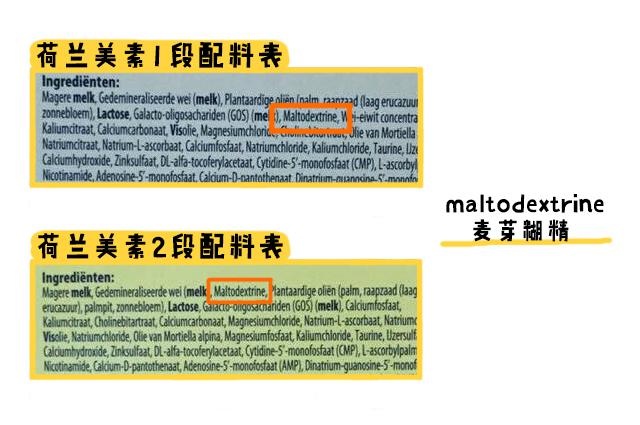 說(shuō)回荷蘭美素本身,按照配料表來(lái)看,它1段和2段都添加了麥芽糊精,而市面上奶粉一般會(huì)在3段后才添加,那荷蘭美素就添加得有點(diǎn)早了。