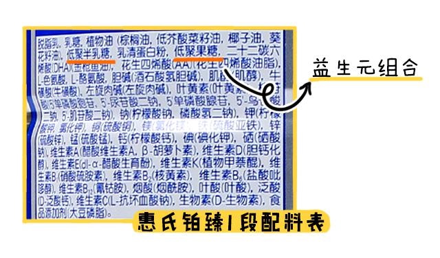 而惠氏鉑臻各個段數都添加有益生元組合,益生元組合可以促進腸道有益菌生長,減少害菌數目,對提高寶寶的抵抗力有一定的幫助。
