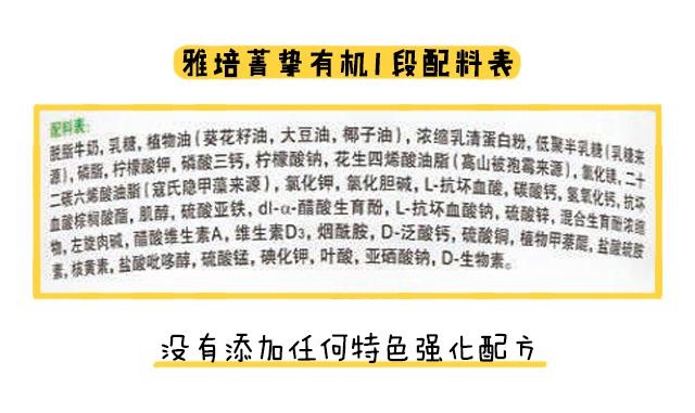 很多普通奶粉都會添加的DHA、ARA、核苷酸、牛磺酸、膽堿和益生元這6個常規強化配方(國標沒有規定要添加),菁摯有機1段只添加了4個,缺少了牛磺酸和核苷酸,而2段和3段除了沒有牛磺酸和核苷酸外,膽堿也沒有再添加進去了,大家可以看看下面這個表格。