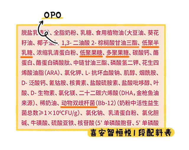 首先我們來看看喜安智恒悅添加了什么配方,是針對什么方面。根據(jù)配料表來看,這個奶粉各個段數(shù)所添加的OPO,益生菌(動物雙歧桿菌)和益生元組合(低聚半乳糖+低聚果糖+多聚果糖),都有助改善便秘哦。