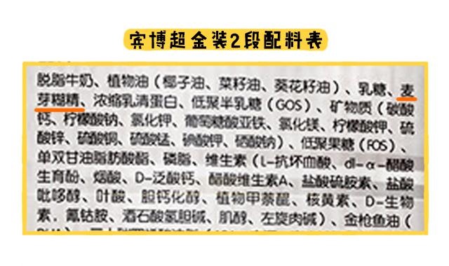 但是看過我文章的媽媽都知道,我不是太推薦含有麥芽糊精的奶粉,麥芽糊精本身不是什么有害物質,但由于它的添加,會使得碳水化合物中乳糖的添加量有所減少,而麥芽糊精的營養價值又比不上乳糖。所以如果你家寶寶沒有腸胃不適,或者乳糖不耐受這些情況,我個人認為沒有太大必要為了更好吸收,而選擇了營養價值較低的麥芽糊精了。尤其是6個月以下純奶粉喂養的寶寶,因為這個階段的寶寶普遍都沒有引入輔食,那么奶粉是唯一營養攝入來源了,最好還是選擇乳糖含量較高的產品。