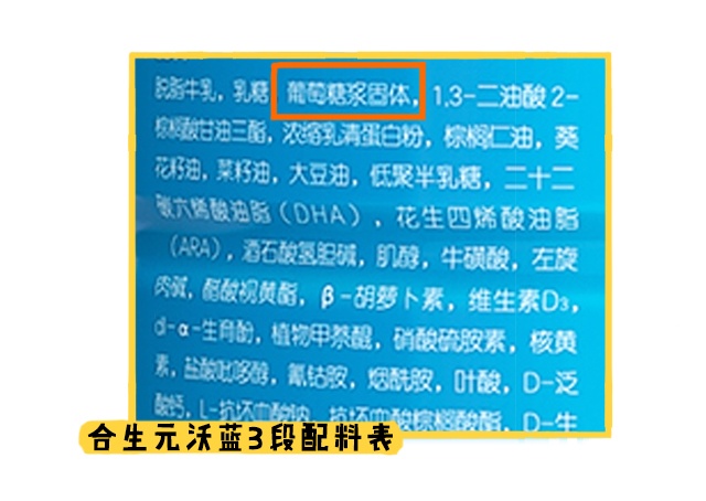 至于碳水化合物方面,這個奶粉1段和2段就沒有見到有添加比較好吸收的成分,不過3段加入了葡萄糖漿,它是個比較好吸收的碳水化合物。