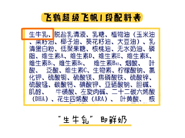 首先是奶源這塊,我查看了兩款奶粉的配料表,超級飛帆全段數(shù)都是使用鮮牛奶來生產(chǎn)。