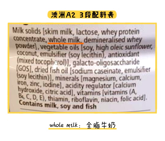 不過大家要注意一下,A2的奶基含有全脂牛奶,牛奶脂肪球的直徑比較大,初生寶寶可能比較難吸收,等寶寶大一點就不用擔心這個問題。