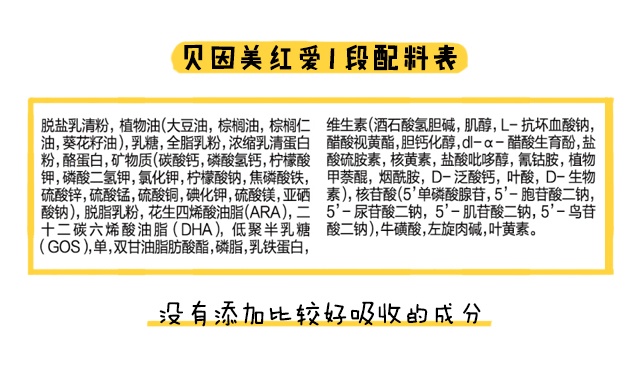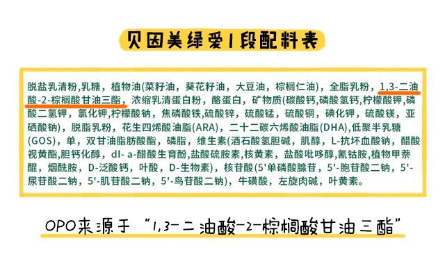 根據配料表來看,貝因美綠愛所有段數都添加了OPO結構脂,OPO結構脂在脂肪方面是比較好吸收的成分。