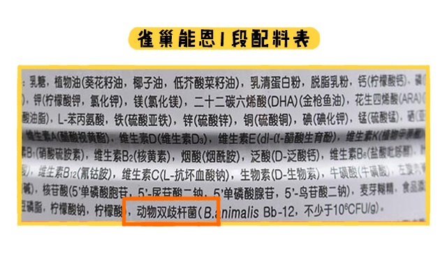 至于特色強化配方,它是指一些商家用作宣傳自家奶粉特別添加的營養(yǎng)素。兩款奶粉各個段數(shù)都只添加了一個益生菌(動物雙歧桿菌),益生菌可以起到抑制病菌生長,調節(jié)寶寶腸道的作用。