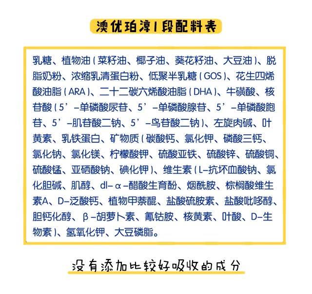 從配料表來看,珀淳各個段數都沒有添加比較好吸收的成分。
