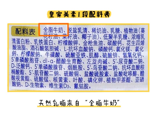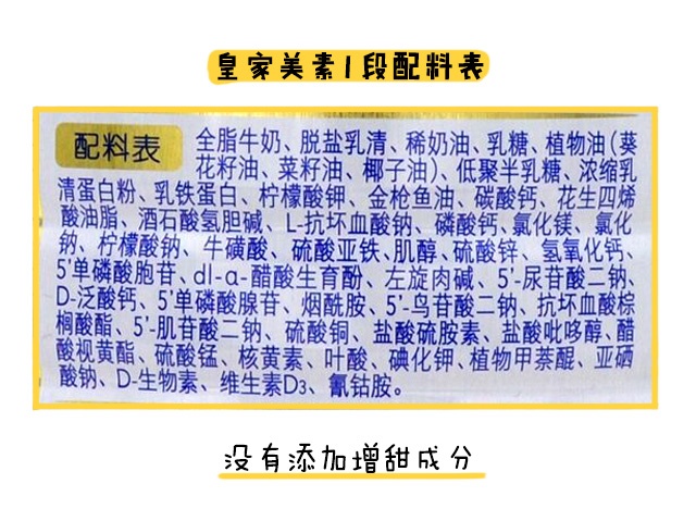 我查看了皇家美素1段配料表,1段并沒有添加蔗糖。