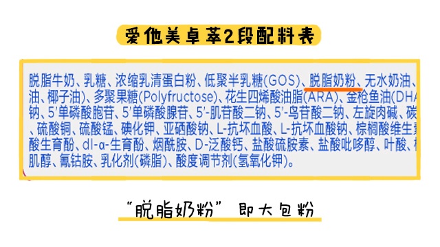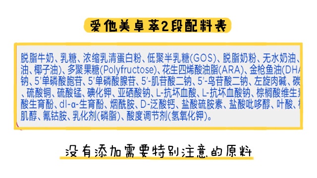 愛他美卓萃在原料方面的表現(xiàn)比較好,各段數(shù)都沒有添加特別需要注意的成分。