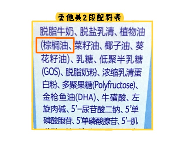 說回奶粉本身,經(jīng)過我對兩款奶粉各段數(shù)配料表的查閱,諾優(yōu)能和愛他美都沒有添加比較好吸收的成分。倒是2款奶粉原料中所添加的棕櫚油,不太利于寶寶對鈣的吸收。