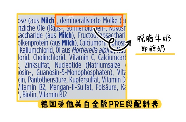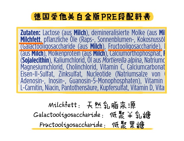 德愛白金與卓萃一樣,都是添加有天然乳脂和益生元組合(低聚半乳糖+低聚果糖)。
